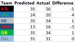 So close, yet so far from a perfect 4-0 last week. My faith in the Bye Week Wizard's magic led me astray, as his latest failure to grasp the concept of time ruined Kansas City's chance at a comeback. We still came out ahead and even hit our upset pick when the Packers pulled out a close victory in Dallas, but it would have been nice to enter this week 64-64-4. On the bright side, our final score predictions were remarkably accurate: