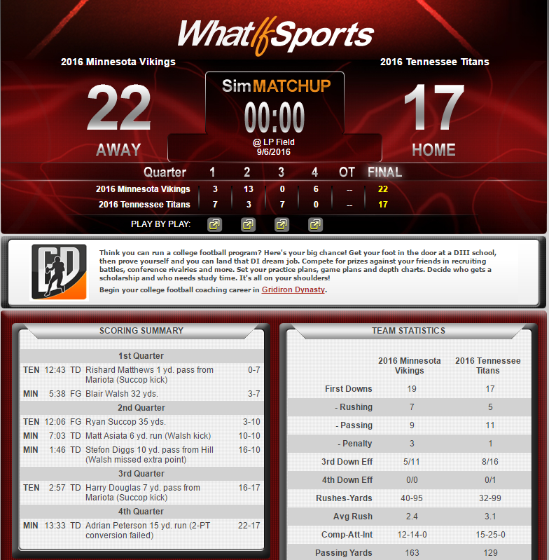 Minnesota Vikings -2 AT Tennessee Titans