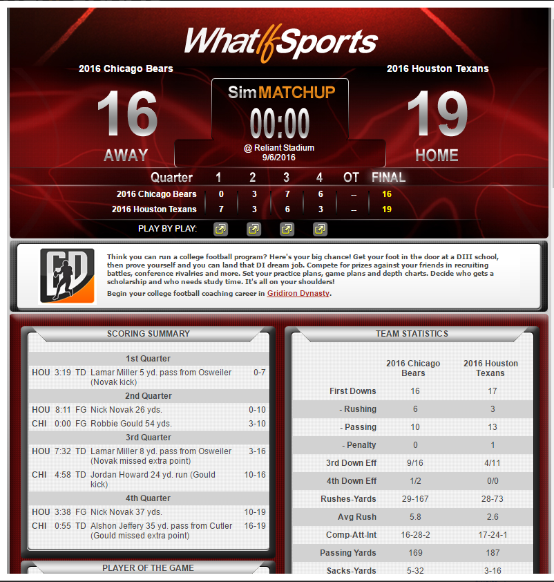 I think the Texans defense will give the Bears fits, and I am unsure how the Bears secondary handles DeAndre Hopkins.