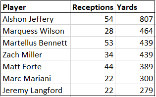 Zero 1,000-yard receivers and only one 500-yard receiver. Ouch.