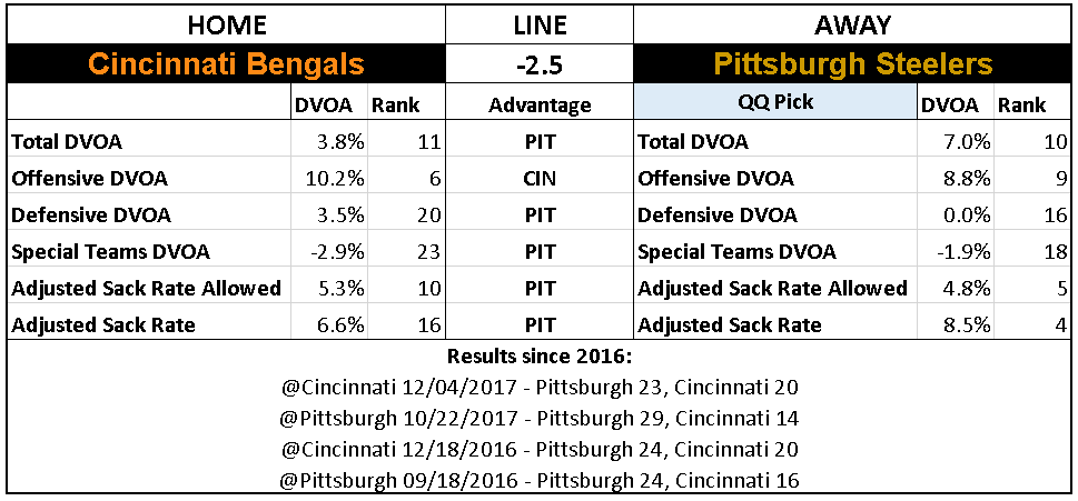 Not only does Pittsburgh have an edge from an anayltics standpoint, they also have a mental edge after winning the last six meetings between these teams. It’s been a lot of fun riding Cincinnati this year, but I’ll need to see them beat the Steelers before I believe it.