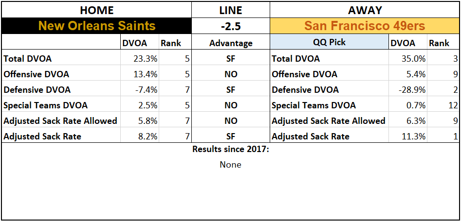 New Orleans Saints -2.5 vs. San Francisco 49ers