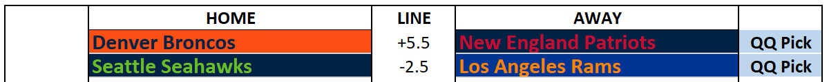 I’m a little mad at Josh Allen for giving us this matchup instead of Bills-Patriots round three, but it isn’t his fault Bo Nix broke his ankle on a strangely-timed QB keeper in overtime. Now Jarrett Stidham and Sean Payton will be trying to keep pace with Drake Maye with the benefit of facing a much weaker defense, at least at first glance. The Patriots didn’t exactly cover themselves in glory last week, managing just 248 yards and winning largely because of four ugly interceptions from C.J. Stroud. I think the winner of this game, including the spread or not, will be decided by two things: can the Denver defense attack a weak offensive line and shut down Drake Maye? And can Jarrett Stidham execute a classic backup-QB gameplan against the Patriots?