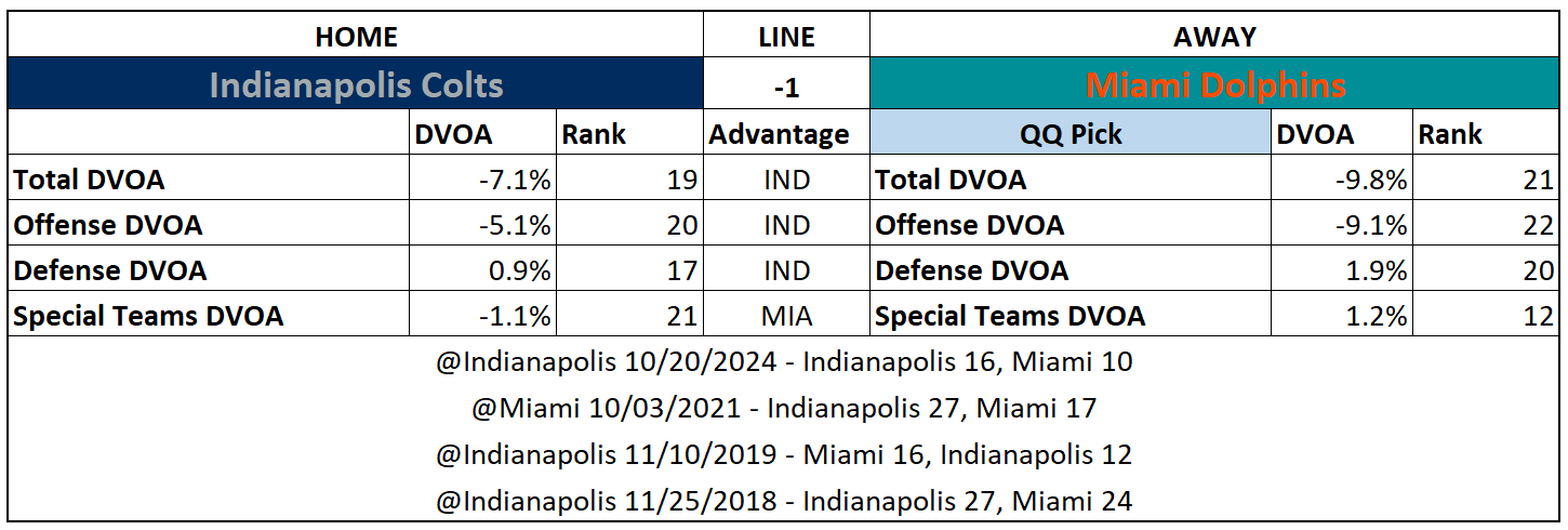 Ah, the offseason darlings in New England here. Drake Maye showed some flashes in his rookie year, Mike Vrabel is taking over for Jerod Mayo, and the return to winning football in New England is here! Or is it? New England went 4-13 last year and finished 29th in DVOA. I don’t think Jerod Mayo was a good head coach, but what evidence do I really have to go on? This roster had a lot of holes and they still do this year, because they’ve only had one draft since then. The makeover in Las Vegas is more dramatic: they also replaced their one-year head coach with a proven winner, moving from Antonio Pierce to Pete Carroll, and they upgraded from Aidan O’Connell and Gardner Minshew to Geno Smith at quarterback. The Raiders were a slightly better team last year and they made more significant improvements in the offseason, so I’m happy to take the standard road line here. Raiders +2.5