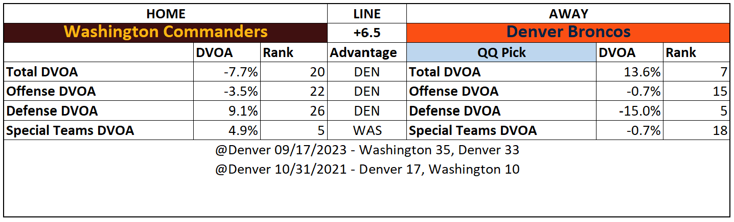 Denver’s defense is supposed to be really good, and Marcus Mariota is likely to start for the Commanders again this weekend. Bo Nix is not a legitimate NFL quarterback, as evidenced by his 2-2 record and +3 point differential on the road this season. I just think we’re in a real nightmare scenario for Washington with the way their injuries have compounded, and Denver is closer in quality to the Chiefs, Lions, Seahawks, and Cowboys (all of whom blew out the Commanders) than the Bears or Dolphins (who had close wins). Broncos -6.5