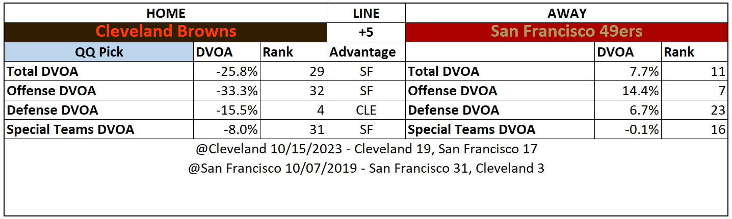 Every time you look at a Cleveland Browns game, you have to wonder just how many points their offense will give you in support. Shedeur Sanders played against the Raiders last week, and he was decidedly fine for a mid-round rookie quarterback. They’re not very good at running or passing the football, and usually you need one of those things to be competitive. San Francisco is still missing a lot of defensive talent, though, and Jim Schwartz’s defense was able to hold Brock Purdy in check two years ago. I’d rather pass entirely, but since we pick them all, we’ll take the awesome defense at home. Browns +5