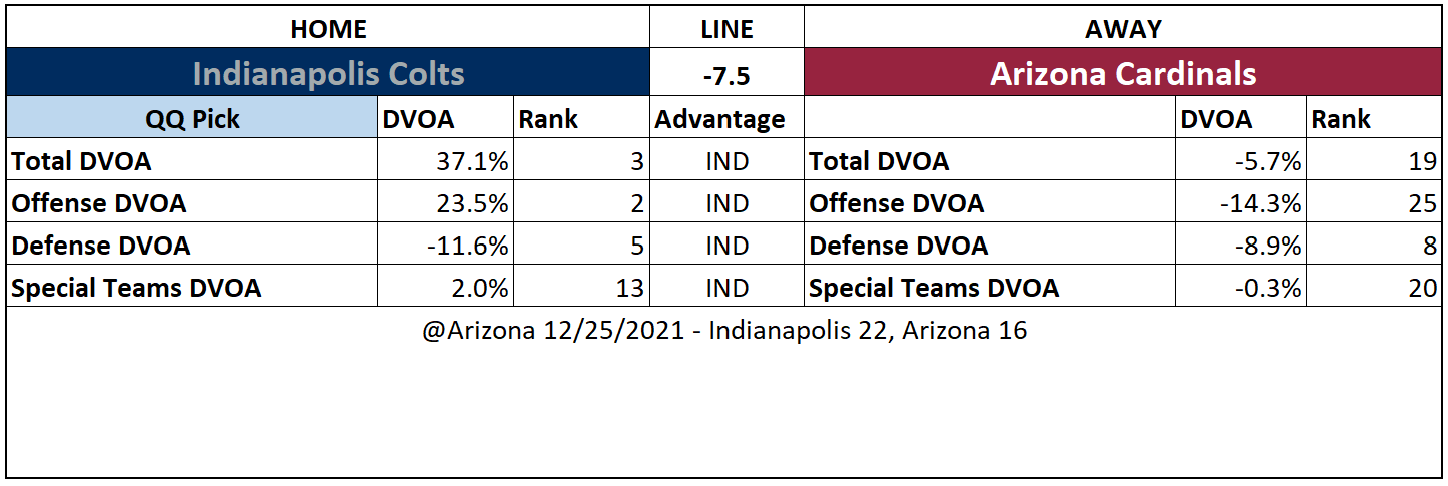 Indianapolis Colts -7.5 vs. Arizona Cardinals
